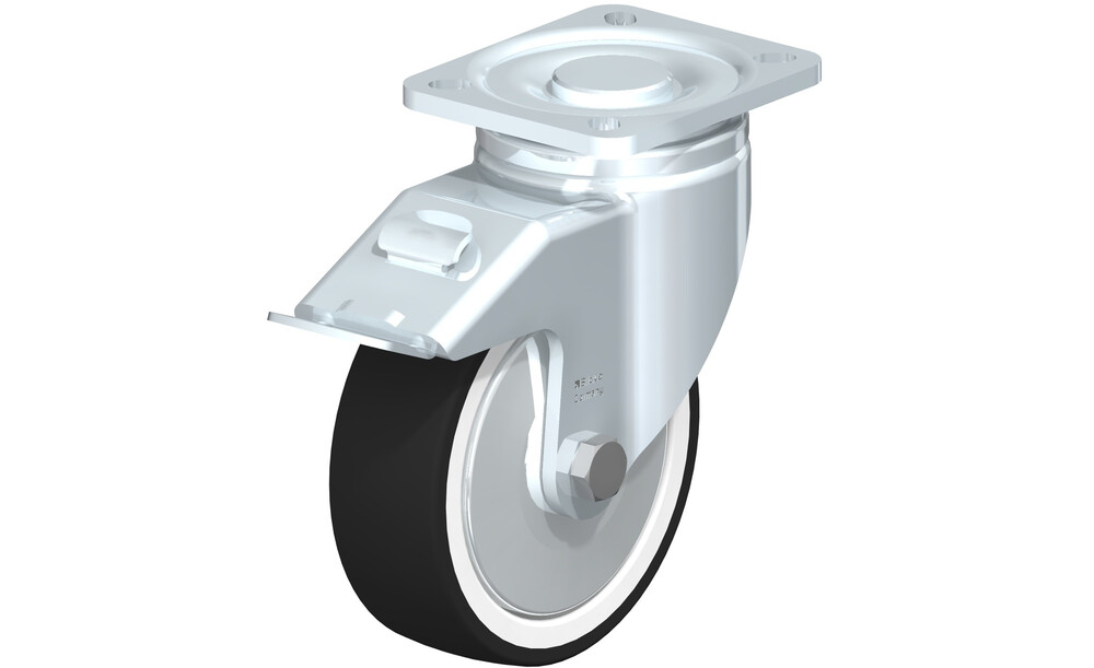 Stahlblech-Lenkrolle, Schwerlast-Ausführung, mit Anschraubplatte, mit Feststeller 'stop-fix',
