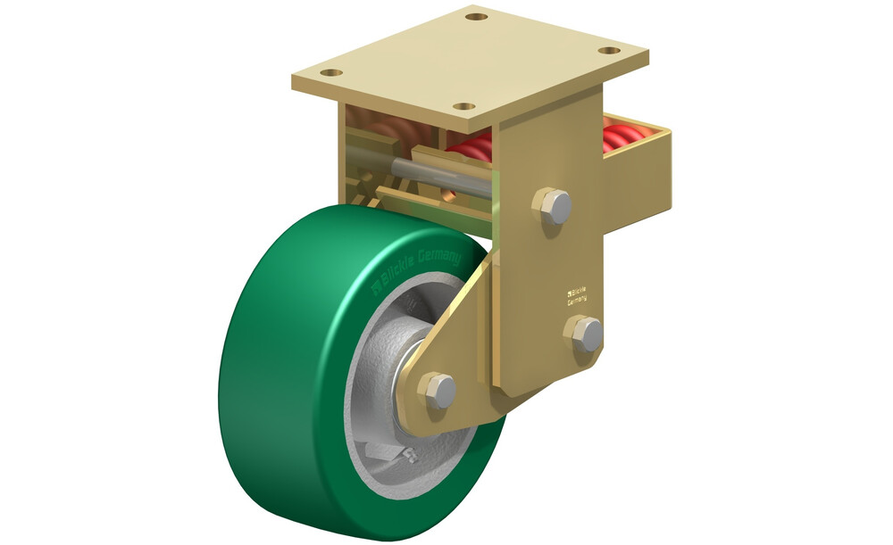BLICKLE Stahlgeschweißte Schwerlast-Bockrolle mit Stahlfeder