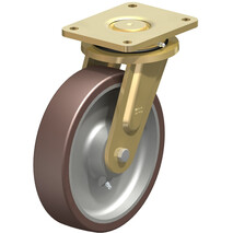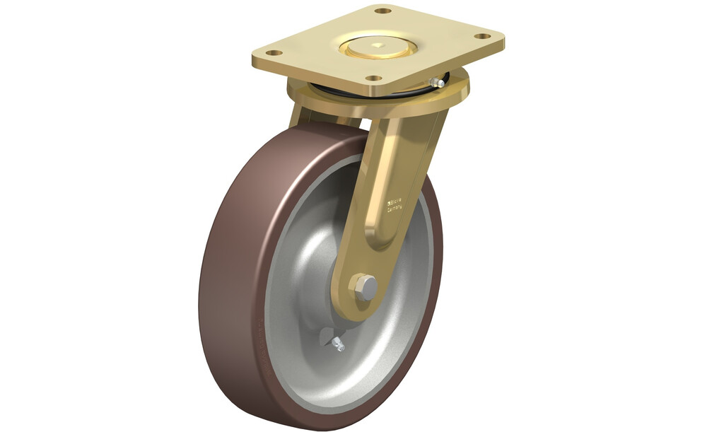 - Laufbelag: hochwertiges Polyurethan-Elastomer Blickle Besthane®, Härte 92 Shore A, Farbe braun, spurlos, kontaktverfärbungsfrei