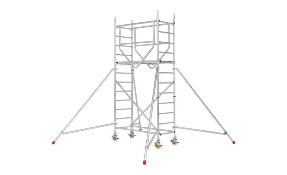 - Sicherheitshinweis: ab 4,27 m Reichhöhe inkl. Ausleger für erhöhte Standsicherheit, ab 7,27 m Reichhöhe inkl. teleskopierbarem Ausleger mit Bajonett-Verschluss zur bequemen Montage vom Boden aus und zum Ausgleich von Bodenunebenheiten