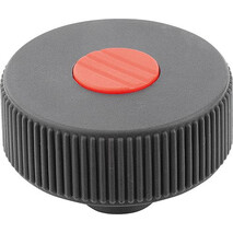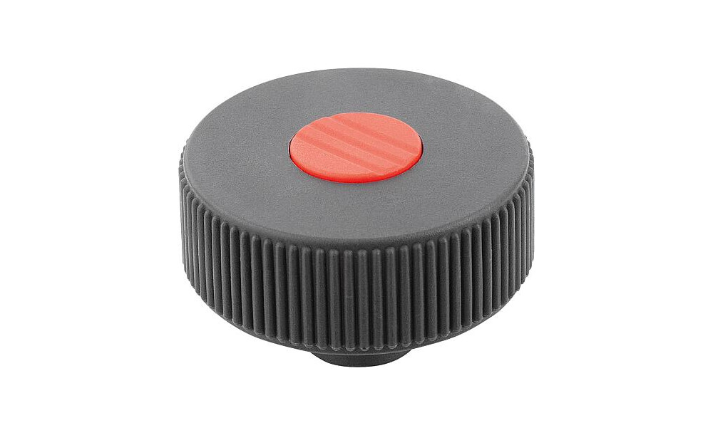 RÄNDELRAD GR.1, D1=40 D=M06 , FORM:K, THERMOPLAST SCHWARZGRAU RAL7021, KOMP:STAHL, DECKEL:ROT RAL3020