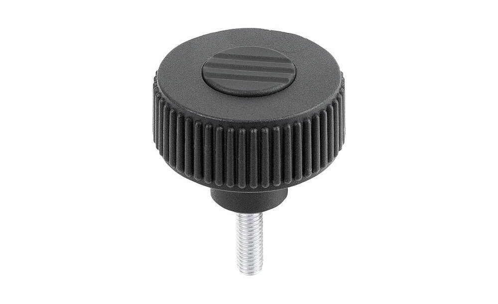 RÄNDELRAD GR.1, D1=40 D=M06X20 , FORM:L, THERMOPLAST SCHWARZGRAU RAL7021, KOMP:STAHL, DECKEL:SCHWARZGRAU
