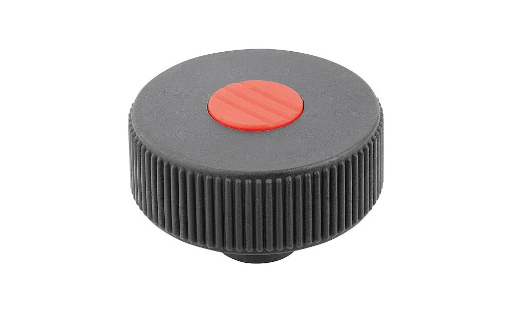 RÄNDELRAD GR.1, D1=40 D=M06, , FORM:K, THERMOPLAST SCHWARZGRAU RAL7021, KOMP:EDELSTAHL, DECKEL:ROT RAL3020