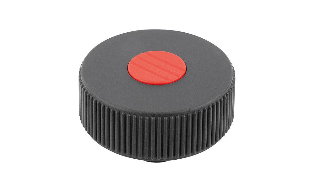 RÄNDELRAD GR.2, D1=50D=8 , FORM:H, THERMOPLAST SCHWARZGRAU RAL7021, KOMP:STAHL, DECKEL:ROT RAL3020