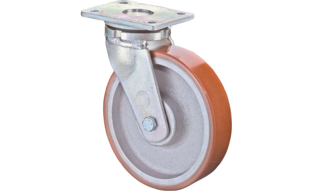 -Schwerlast-Lenkrolle, Guss-Polyurethan Diese Schwerlastrollen lassen sich an verschiedensten Transportgeräten anbringen.