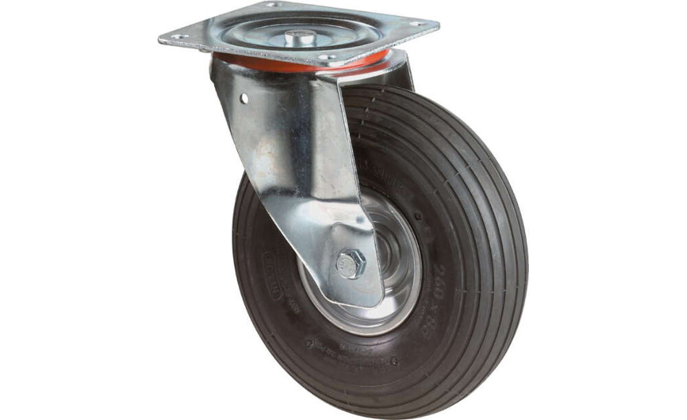 -Luftrad, Lenk- und Bockrolle Diese Rollen mit Lufträdern haben ein verzinkt-chromatiertes Stahlblech-Gehäuse