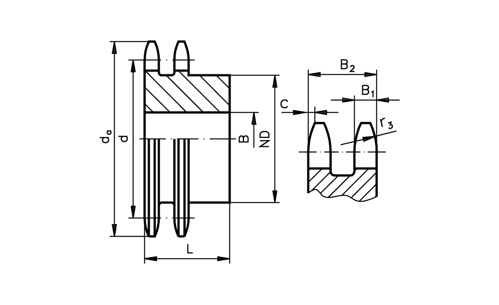 Kettenrad ZRS mit einseitiger Nabe 08 B-2, 21 Zähne, Stahl