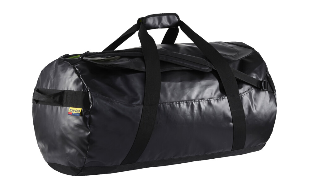 Abschließbarer Reißverschluss. Gepolsterte Schulterriemen. Innenliegende Mesh-Tasche und im Deckel liegendes Dokumentenfach. Schlüsselanhänger. Tragegriff. Gewebtes Blackläder Etikett an der Seite. Adresstasche. Fasst 90 Liter. Kann als Rucksack getragen werden. 2 Trageriemen. Ausweistasche. Materialien: 1000D Tarpaulin. Maße: 40x40x70cm.