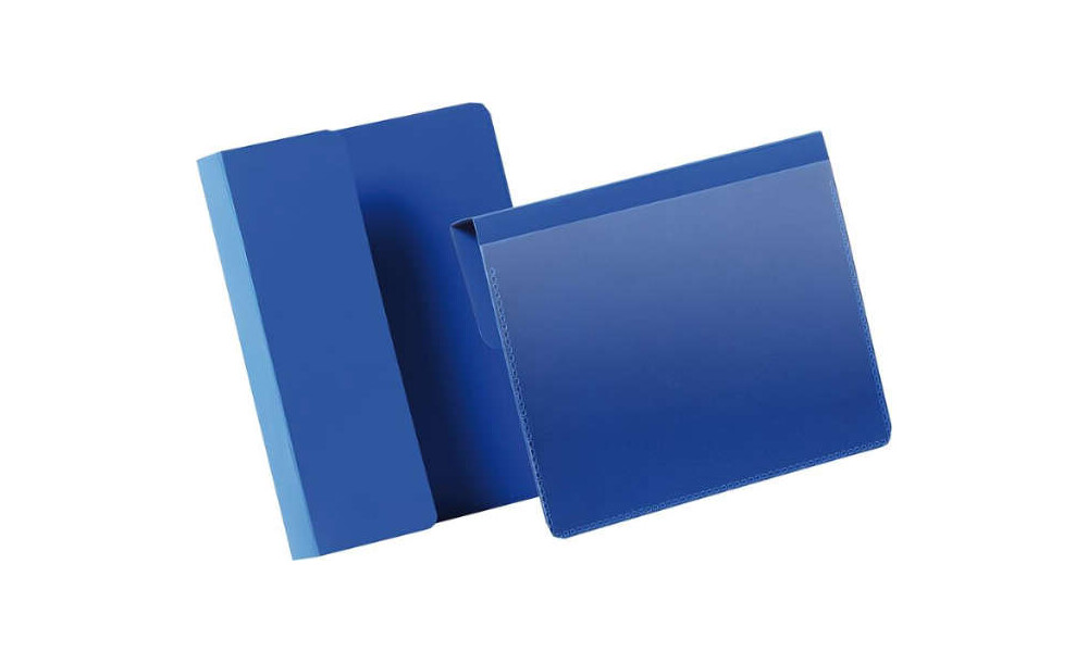 Kennzeichnungstasche DURABLE, B148xH105 mm A6 quer blau, mit Falz VE 50 Stück