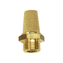 Sinterbronce-Schalldämpfer, Messing Gewinde/Sechskant, G 1/4, SW 15 mm, Betriebsdruck 0 - 8 bar, Betriebstemp. -10 °C bis 250 °C. Zur Reduzierung von Abluftgeräuschen an pneumatischen Anlagen.