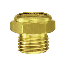 Sinterbronce-Schalldämpfer, flach, G 1/4 a., SW 15 mm, Betriebsdruck 0 - 8 bar, Betriebstemperatur -10 °C bis 250 °C. Zur Reduzierung von Abluftgeräuschen an pneumatischen Anlagen.