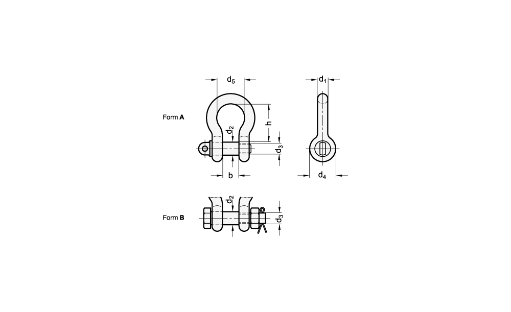 Schäkel, Vergütungsstahl, geschweifte Ausführung