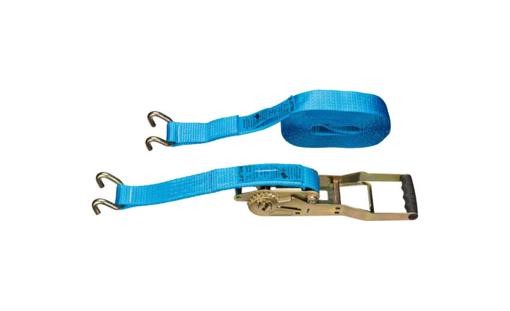 -Zurrgurt Ergo, 5 t, mit Langhebel-Zugratsche und U-Haken Die ergonomischen Vorteile der Langhebel-Zugratsche liegen im langen Spannhebel (ca. 325 mm) und in der optimalen Übersetzung (20 Zähne), d. h. leichte Bedienung – hohe Vorspannkräfte bis 1000 daN sind spielend erreichbar.