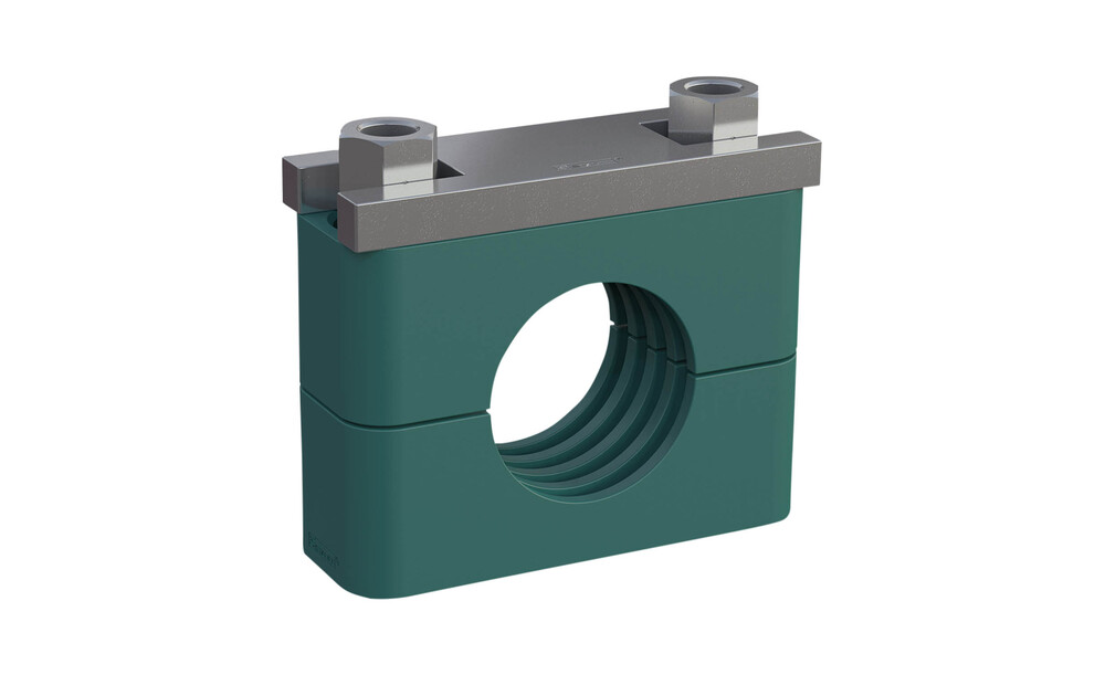 Komplettschelle Schwere Baureihe Gr. 4S Ø16mm Polypropylen W3 SI-Platte, AF-Schraube gerippt, mit Vorspannung