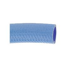 PVC-Spezial-Pneumatikschlauch, Temp. -10 °C bis 60 °C, Schlauch-ø 8,2x6, PN bei 20 °C max. 40 bar, Rolle à 50 m, blau. Flexibler, hochwertiger, innen glatt beschichteter PVC-Schlauch mit Umflechtung aus imprägniertem Spezialgewebe für höhere Drücke. Weitgehend beständig gegen Salzlösungen, verdünnte Säuren und Laugen, Fette und Mineralöle.