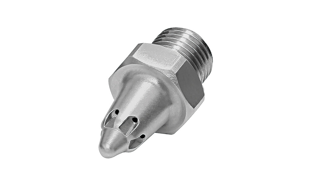 Lärmarme Runddüse, M12x1,25, Sicherheitsdüse Standardausführung, Aluminium, Länge 35,0 mm, Düsen-Außen-ø 11 mm. Mit diesen lärmreduzierenden Düsen wird bei korrekter Auslegung, im Vergleich zu herkömmlichen Einlochdüsen, bei gleicher Blaskraft ein niedriger Geräuschpegel erreicht. Die Nutzung lärmreduzierender Düsen wird vom Berufsgenossenschaftlichen Institut empfohlen.