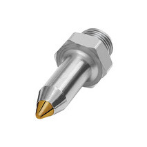 Feinstrahldüse, 1/2 - 27 UNS, Sicherheitsdüse für Hochleistungs-Blaspistolen, Stahl vern., MS, Länge 45,0 mm, Düsen-Außen-ø 10 mm. Mit diesen lärmreduzierenden Düsen wird bei korrekter Auslegung, im Vergleich zu herkömmlichen Einlochdüsen, bei gleicher Blaskraft ein niedriger Geräuschpegel erreicht. Die Nutzung lärmreduzierender Düsen wird vom Berufsgenossenschaftlichen Institut empfohlen.