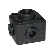 Luftverteilerdose, für Serie »speedfit«, Kunststoff, schwarz, 5 x G 1/2 IG, mit 4 selbstdichtenden Kunststoffschrauben. Mit 5 x G 1/2 Innengewinde zum Einschrauben von Adaptern und mit 4 selbstdichtenden Kunststoffschrauben für die Gewindeöffnungen sowie G 1/2 für eine Schnellkupplung.
