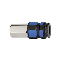 Schnellverschlusskupplung NW 7,8, hoher Durchfluss, G 1/2 IG, Betriebsdruck 0 - 35 bar, Mediums-/Umgebungstemp. -20 °C bis 40 °C. Einseitig absperrende Einhand-Schnellverschlusskupplung mit hoher Durchflussleistung (etwa doppelt so hoch wie bei der gängigen Standardkupplung NW 7,2) bei gleichzeitig minimierten Kuppelkräften. Für alle Anwendungen mit überdurchschnittlich hohem Luftbedarf! Um Verletzungen oder den "Peitschenhiebeffekt" zu vermeiden, empfehlen wir den Stecknippel beim Entkuppeln mit einer Hand festzuhalten. Diese Schnellverschlusskupplung eignet sich nicht für die direkte Montage an pulsierendem Werkzeug. Wir empfehlen die Verwendung unserer Vibrationsdämpfer, gemäß ISO 6150, § 7.1. Einsatzgebiete: Pneumatik, Maschinen- und Anlagenbau, Mess-, Regel- und Steuerungstechnik, Fertigungsindustrie, Medizintechnik, Chemie-/ Pharmaindustrie, Werkstätten, Automotive, Nahrungsmitteltechnik, Luftfahrttechnik.