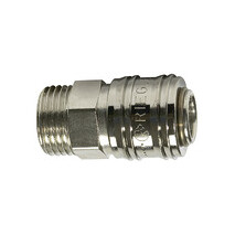 Schnellverschlusskupplung NW 7,2 »connect line«, MS vern., G 1/2 AG, Betriebsdr. 0 - 35 bar, Mediums-/Umgeb.temp. -20°C bis 100°C. Die universelle Einhand-Schnellverschlusskupplung in einseitig absperrender Ausführung zu einem enorm günstigen Preis. Durch die geschlossene Verriegelungshülse wird ein Verschmutzen der Innenteile verhindert. Bei Verwendung von Stahlnippeln kann diese Kupplung aufgrund ihrer gehärteten Verriegelungsstifte auch an Druckluftwerkzeugen verwendet werden. Um Verletzungen oder den "Peitschenhiebeffekt" zu vermeiden, empfehlen wir den Stecknippel beim Entkuppeln mit einer Hand festzuhalten. Diese Schnellverschlusskupplung eignet sich nicht für die direkte Montage an pulsierendem Werkzeug. Wir empfehlen die Verwendung unserer Vibrationsdämpfer, gemäß ISO 6150, § 7.1. Einsatzgebiete: Pneumatik, Maschinen- und Anlagenbau, Mess-, Regel- und Steuerungstechnik, Fertigungsindustrie, Medizintechnik, Chemie-/ Pharmaindustrie, Werkstätten, Automotive.