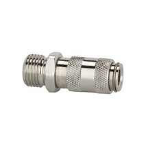 Schnellverschlusskupplung NW 2,7, Edelstahl 1.4404, M5 AG, Betriebsdruck 0 - 35 bar, Mediums-/Umgebungstemp. -15 °C bis 200 °C. Einseitig absperrende Einhand-Schnellverschlusskupplung mit extrem kleinen Baumaßen und großem Durchgang bei geringem Druckabfall. Um Verletzungen oder den "Peitschenhiebeffekt" zu vermeiden, empfehlen wir den Stecknippel beim Entkuppeln mit einer Hand festzuhalten. Einsatzgebiete: Pneumatik, Maschinen- und Anlagenbau, Mess-, Regel- und Steuerungstechnik, Fertigungsindustrie, Medizintechnik, Chemie-/ Pharmaindustrie, Automotive, Nahrungsmitteltechnik, Offshore.