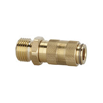 Schnellverschlusskupplung NW 2,7, Messing blank, G 1/8 AG, Betriebsdruck 0 - 35 bar, Mediums-/Umgebungstemp. -20 °C bis 100 °C. Einseitig absperrende Einhand-Schnellverschlusskupplung mit extrem kleinen Baumaßen und großem Durchgang bei geringem Druckabfall. Um Verletzungen oder den "Peitschenhiebeffekt" zu vermeiden, empfehlen wir den Stecknippel beim Entkuppeln mit einer Hand festzuhalten. Einsatzgebiete: Pneumatik, Maschinen- und Anlagenbau, Mess-, Regel- und Steuerungstechnik, Fertigungsindustrie, Medizintechnik, Chemie-/ Pharmaindustrie, Automotive.
