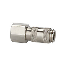 Schnellverschlusskupplung NW 2,7, Edelstahl 1.4305, G 1/8 IG, Betriebsdruck 0-35 bar, Mediums-/Umgebungstemp. -20 °C bis 200 °C. Einseitig absperrende Einhand-Schnellverschlusskupplung mit extrem kleinen Baumaßen und großem Durchgang bei geringem Druckabfall. Um Verletzungen oder den "Peitschenhiebeffekt" zu vermeiden, empfehlen wir den Stecknippel beim Entkuppeln mit einer Hand festzuhalten. Einsatzgebiete: Pneumatik, Maschinen- und Anlagenbau, Mess-, Regel- und Steuerungstechnik, Fertigungsindustrie, Medizintechnik, Chemie-/ Pharmaindustrie, Automotive, Nahrungsmitteltechnik, Offshore.