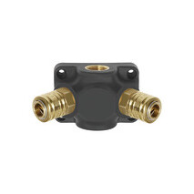 Endverteilerdose, 2 Standardkupplungen NW 7,2, Eingangsgewinde G 1/2, Betriebsdr. max. 15 bar, Umgebungstemp. -10 °C bis 50 °C . 2- bzw. 3-fach-Verteilerdosen aus hochfestem, glasfaserverstärkten Kunststoff (PA6 GF 30) mit großer Anwendungsvielfalt. Wahlweise mit 2 oder 3 fertig konfektionierten Messing-Schnellverschlusskupplungen sowie 2 Gewindegrößen beim Eingang- und Ausganggewinde (nicht kombinierbar). Alle Verteilerdosen haben einen robusten Messing-Gewindeeinsatz, der durch seine Formgebung gegen Verdrehung und gegen axiale Verschiebung gesichert ist. Die Bohrbildmaße sind bei allen Verteilerdosen identisch, damit wird ein einfacher und flexibler Austausch gewährleistet. Achtung: Beachten Sie, dass die Verteilerdosen nicht in Gefahrenbereichen installiert werden sollten. Gefahrenbereiche stellen z.B. Transportwege, Fluchtwege etc. dar.