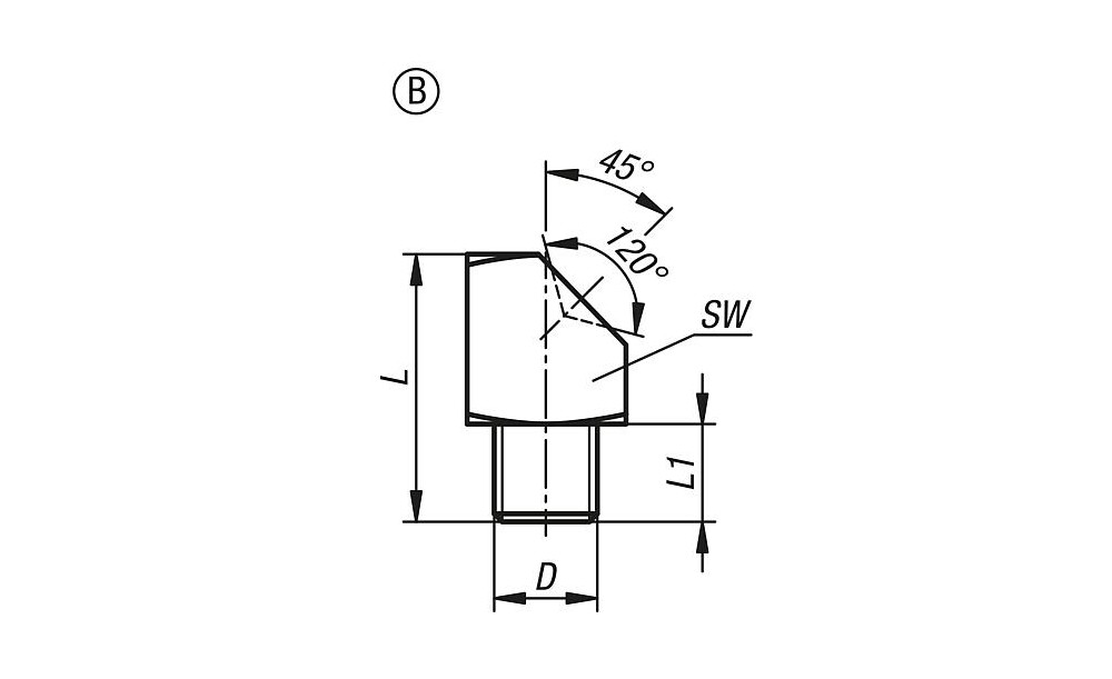 TRICHTERSCHMIERNIPPEL ABGEWINKELT 45° D=M10X1, FORM:B STAHL, VIERKANT