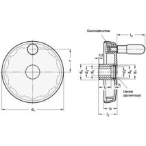 Scheibenhandräder, Kunststoff, Buchse / Griffachse Stahl