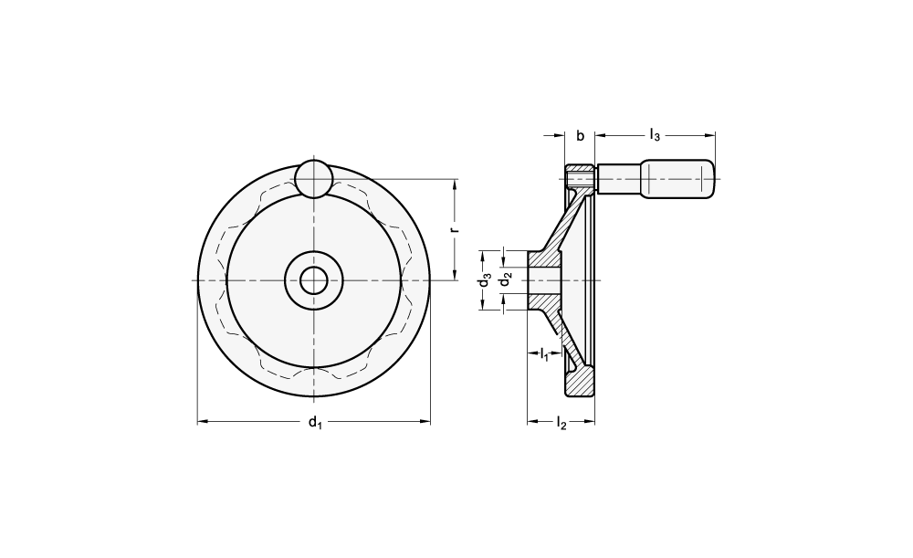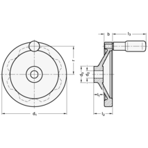 Scheibenhandräder GN 321 sind auf der Rückseite mit Griffmulden versehen.