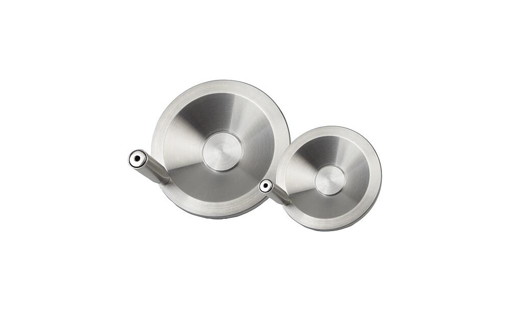 SCHEIBENHANDRAD MIT ZENTRIERBOHRUNG, D1=203,2, EDELSTAHL 1.4301 BLANK, GRIFF DREHBAR