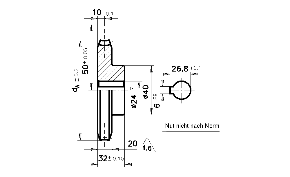 Präzisions-Schneckenrad Achsabstand 50 mm i = 35 35 Zähne