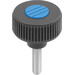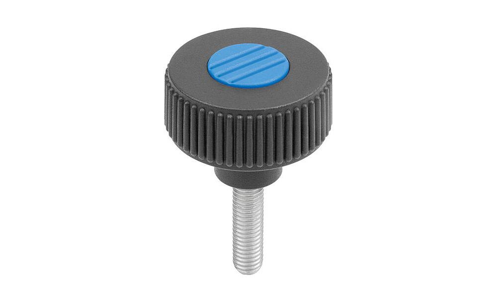 RÄNDELRAD GR.2, D1=50 D=M10X30, , FORM:L, THERMOPLAST SCHWARZGRAU RAL7021, KOMP:EDELSTAHL, DECKEL:BLAU