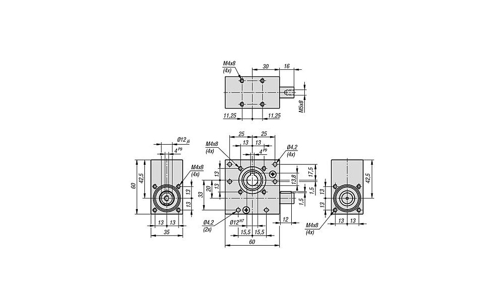 SCHNECKENGETRIEBE OHNE SELBSTHEMMUNG, U=30:1, M=8,5 / 7 / 5,5, ALUMINIUM ELOX...