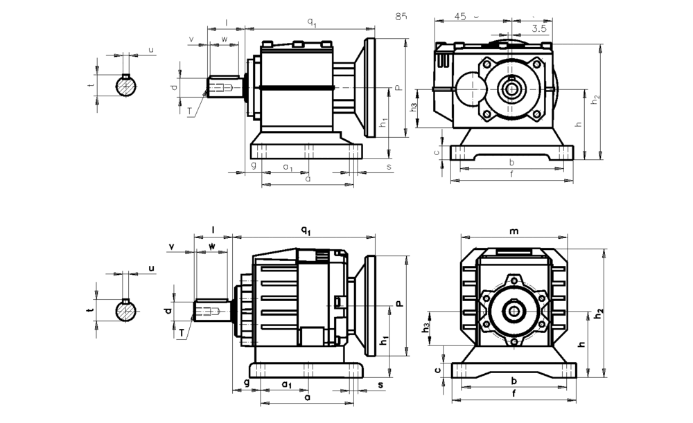 Stirnradgetriebemotor HR/I 0,18kW 230/400V 50Hz Bauform B3
