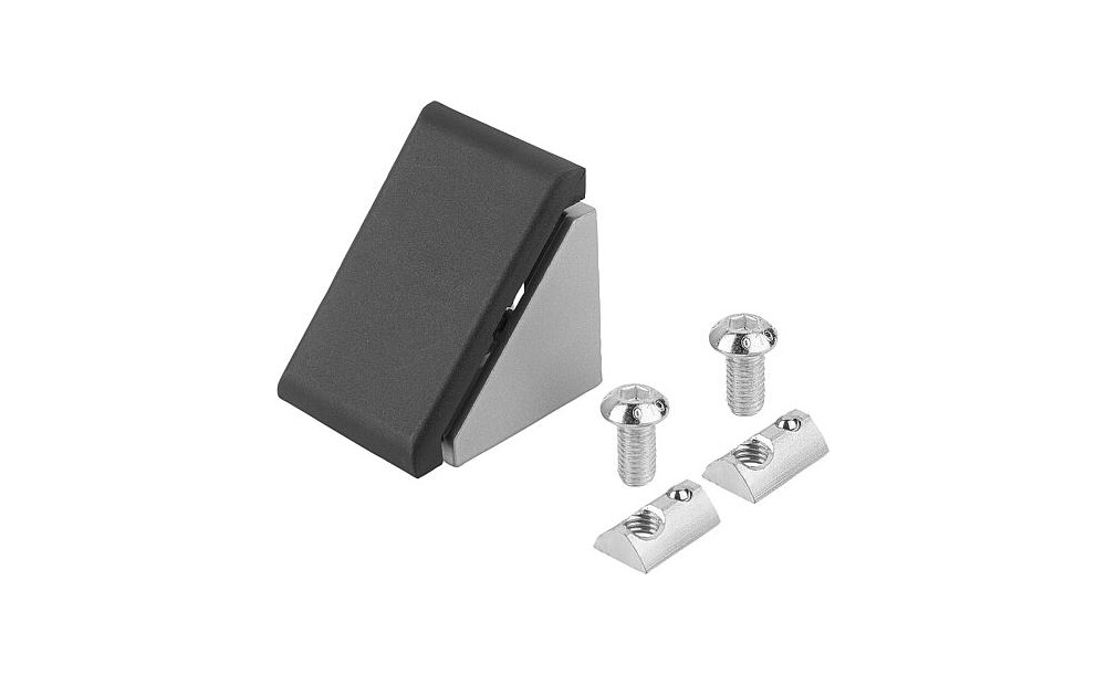 Die Winkel besitzen Zentriernasen für eine genaue und verdrehgesicherte Montage. Die Zentriernasen können bei Bedarf über eine Sollbruchstelle entfernt werden, z.B. für die Montage von Platten. Die offene Seite kann mit der Abdeckkappe verschlossen werden.