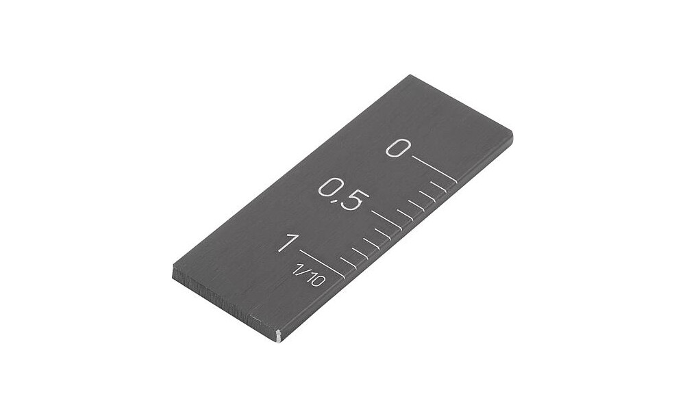 Blendfrei ablesbar durch schwarz eloxierte Oberfläche und kontrastreiche Skalierung. Die Skalierung ist tiefgelasert.