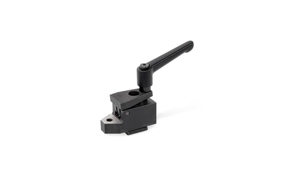 Niederzugspanner können direkt, z. B. in einer Vorrichtungsplatte eingeschraubt oder auf Maschinentischen mit T-Nuten befestigt werden. Zusätzlich lassen sie sich mit den Auflageleisten GN 9190.3, die als Zubehör erhältlich sind, in beliebiger Position quer zur T-Nut positionieren.