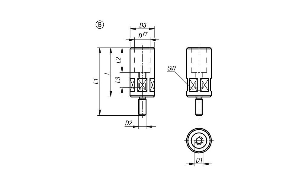 SPANNHAKENAUFNAHME, FORM:B MIT SECHSKANT, D1=M16, D2=M16, L=80