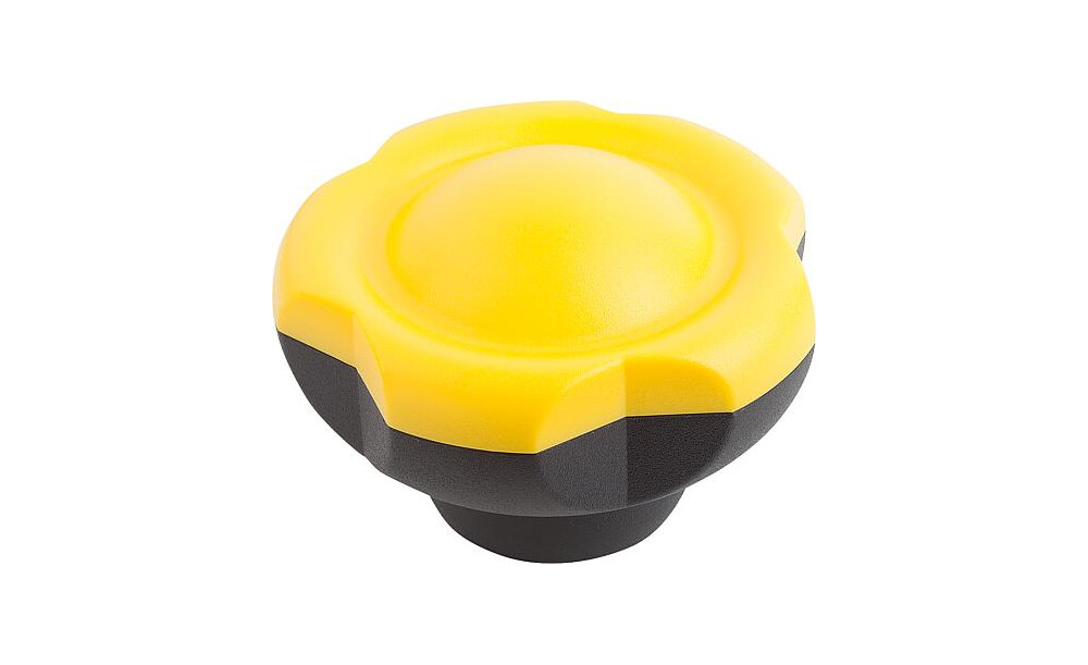 FÜNFSTERNGRIFF D1=50 D=M08 H=34,8, FORM:K, THERMOPLAST SCHWARZGRAU RAL7021, KOMP:STAHL, DECKEL:GELB RAL1021