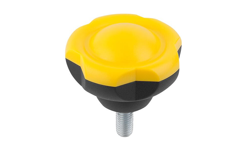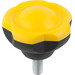 FÜNFSTERNGRIFF D1=63 D=M12X20 H=44, FORM:L, THERMOPLAST SCHWARZGRAU RAL7021, KOMP:STAHL, DECKEL:GELB RAL1021