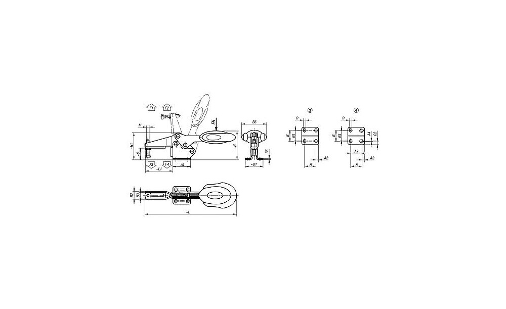SCHNELLSPANNER HORIZONTAL MIT SICHERHEITSVERRIEG., FUß WAAGRECHT F1=2000, VER...