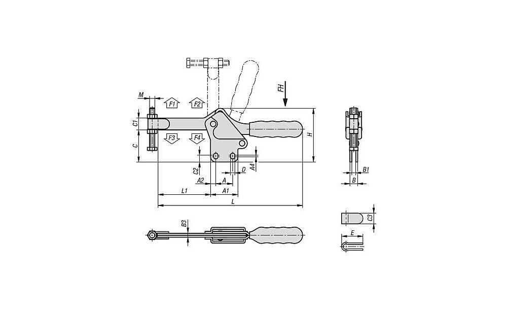 SCHNELLSPANNER HORIZONTAL STANDARD, FUß SENKRECHT F2=3400, VOLLER HALTEARM M0...