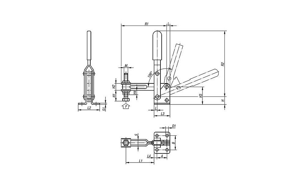 SCHNELLSPANNER VERTIKAL, FUß WAAGRECHT, GROßE AUSFÜHRUNG, STAHL VERZINKT, MIT...