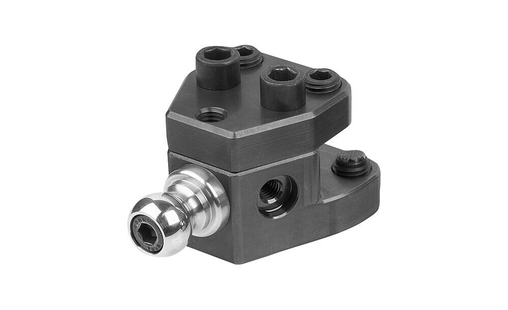 Die Spanneinheit dient zur Anbindung an das Werkstück. Die Spannkugel kann an mehreren Stellen der Spannpratze befestigt werden. Dadurch ist die Spannpratze flexibel verstellbar.
