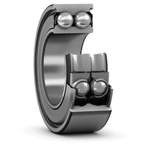 Ein zweireihiges Schrägkugellager mit Dichtungen an beiden Seiten entspricht einem Paar aus einreihigen Schrägkugellagern in O-Anordnung, benötigt aber weniger axialen Einbauraum. Je nach Dichtungsausführung können sie bei hohen Drehzahlen betrieben werden und sind für die Aufnahme hoher axialer Kräfte in beiden Richtungen besser geeignet als Rillenkugellager. Vorteile: Hohe Nenndrehzahlen;Aufnahme relativ hoher Radiallasten und hoher Axiallasten in beiden Richtungen sowie von Kippmomenten;Geeignet für steife Lageranordnungen;Benötigen weniger axialer Einbauraum als vergleichbares Paar einreihiger Schrägkugellager;Integrierte Dichtung verlängert die Lagerlebensdauer