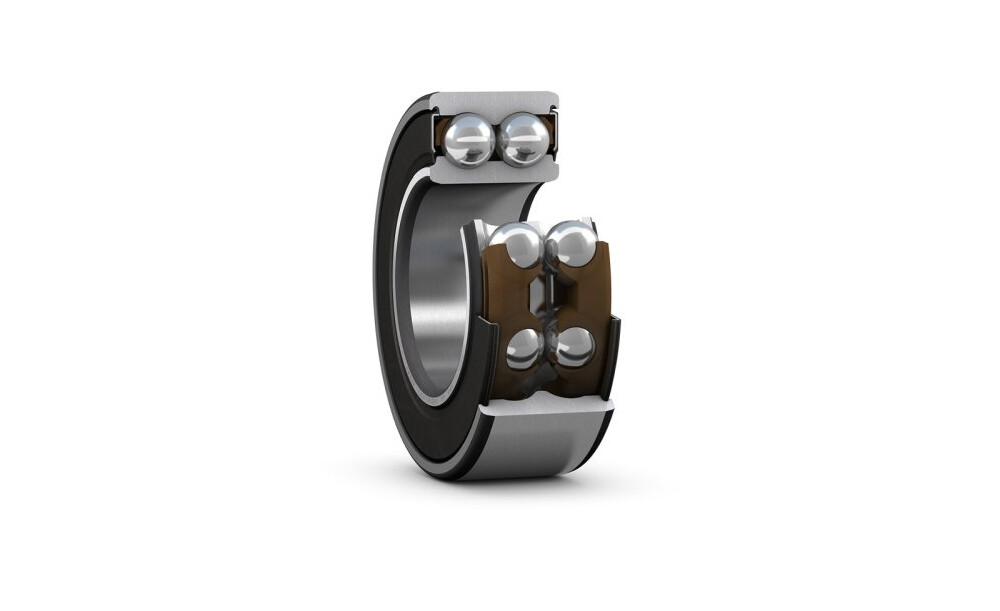 Ein zweireihiges Schrägkugellager mit Dichtungen an beiden Seiten entspricht einem Paar aus einreihigen Schrägkugellagern in O-Anordnung, benötigt aber weniger axialen Einbauraum. Je nach Dichtungsausführung können sie bei hohen Drehzahlen betrieben werden und sind für die Aufnahme hoher axialer Kräfte in beiden Richtungen besser geeignet als Rillenkugellager. Vorteile: Hohe Nenndrehzahlen;Aufnahme relativ hoher Radiallasten und hoher Axiallasten in beiden Richtungen sowie von Kippmomenten;Geeignet für steife Lageranordnungen;Benötigen weniger axialer Einbauraum als vergleichbares Paar einreihiger Schrägkugellager;Integrierte Dichtung verlängert die Lagerlebensdauer