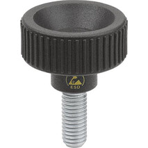 RÄNDELSCHRAUBE ANTISTATISCH D=M08X20, D1=32, H=22, THERMOPLAST SCHWARZ RAL9011, KOMP:AUTOM.STAHL BP