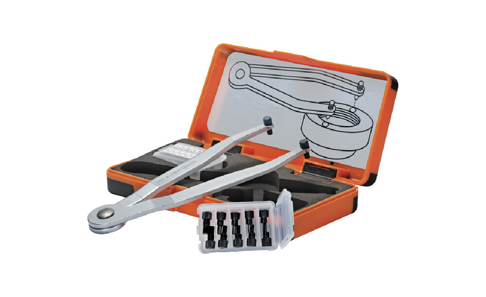 - Stirnlochschlüssel mit auswechselbaren Zapfen (je 2 Stück pro Größe)